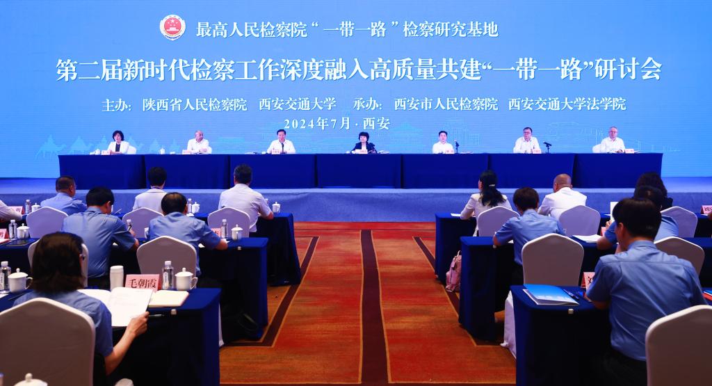 7月10日,最高检“一带一路”检察研究基地第二届新时代检察工作深度融入高质量共建“一带一路”研讨会在西安召开。最高检党组成员、副检察长葛晓燕,省委常委、省委政法委书记刘强,西安交通大学党委书记卢建军出席并讲话。省检察院党组书记、检察长王旭光主持开幕式。全国人大代表方燕、全国政协委员祁志峰、省人大代表杨艺媛、省政协委员刘国兴,最高检检察理论研究所所长郭立新、法律政策研究室一级高级检察官吴孟栓、国际合作局二级巡视员龙梅,省委政法委副书记丁恒,西安市委副书记、市委政法委书记李婧等参加活动。