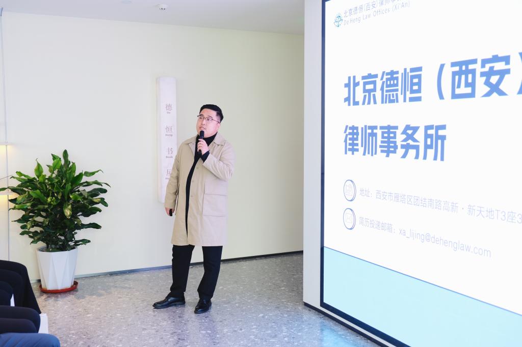 会议伊始,德恒西咸管委会主任、德恒西北六所协同发展联席会秘书长王奇律师介绍了德恒律师事务所在西北地区的协同发展和专业特色,他提到德恒在西北地区的法律服务市场中具有重要地位,并致力于建立一体化、专业化的法律服务网络。此外,王琦主任还询问了同学们对德恒平台的期望,介绍了德恒平台对青年律师成长和培训的重视,并强调了平台支撑和团队价值对个人成功的重要性。