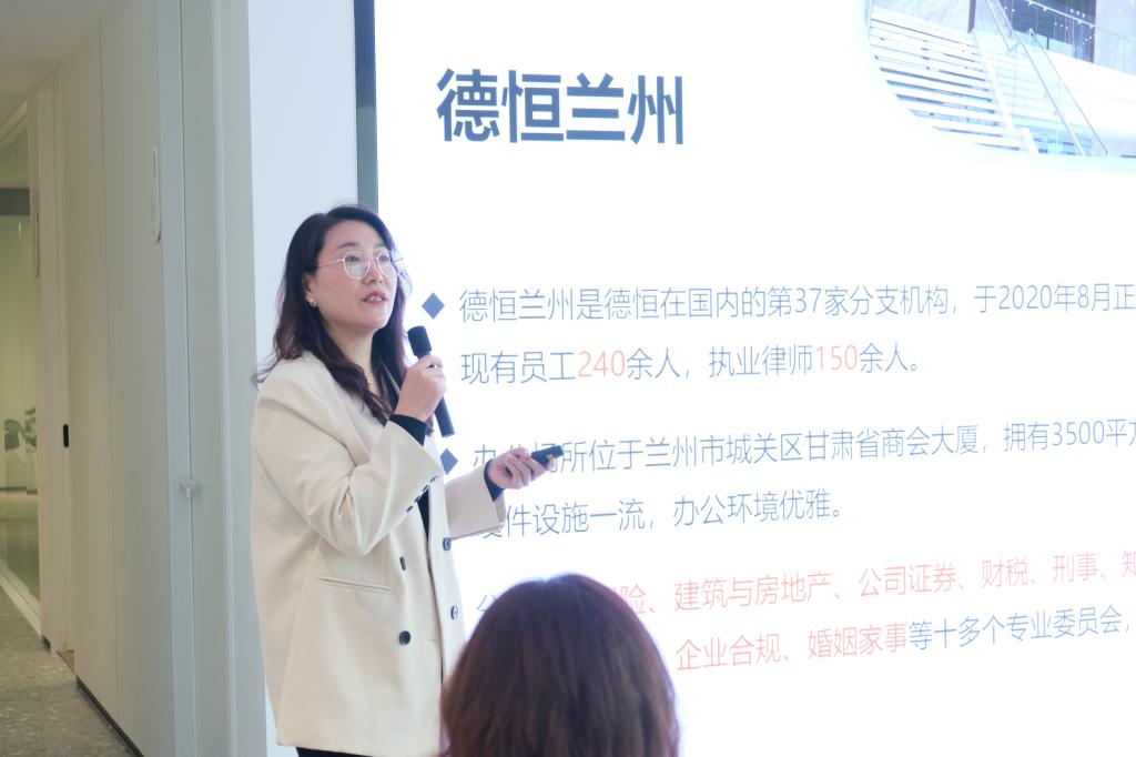 在正式宣讲环节,首先,王奇主任带来主题分享《德恒西北区域的我们》,对德恒西北区域进行总体介绍。他指出德恒律师事务所正朝着“一体化、品牌化”的目标努力,不仅限于服务某一个地区的客户,而是西北六所协同发展,致力于打造西北地区第一品牌。王奇主任的精彩分享使得同学们对德恒律所的战略布局有了更加深入的了解。随后,德恒西北分支机构宣讲人分别介绍了所在地区的发展重点。德恒西安办公室合伙人陈愚律师播放了校招宣传片,短片轻松愉快,展现了西安分所蓬勃向上的工作氛围。陈律师表示,作为德恒西北第一所,德恒西安分所放眼西部,旨在为陕西乃至中国西部的企业事业单位及个人提供一流的、专业的法律服务。德恒乌鲁木齐办公室人力资源高美瑜介绍了乌鲁木齐独特的地理位置,其地处亚欧大陆的中心,是连接中亚、南亚、东欧的重要枢纽城市。基于此,德恒乌鲁木齐分所充分发挥地理优势,在跨境业务、商贸往来中有着丰富的经验,荣获“优秀党支部”“优秀合作单位”等荣誉称号。德恒银川办公室管委会副主任、高级合伙人李晓红律师指出德恒律所立足“塞上江南”银川,这一西北地区的重要经济文化城市,银川分所深耕本地,为区域经济发展提供了全方位的法律服务。德恒西咸办公室高级合伙人刘智萍律师表示西咸分所依托“一带一路”这一新时代中国推进全球治理的伟大实践,立足于古丝绸之路起点,以“为商事客户提供最可信赖的法律服务,推动国家法治进步”为使命,开创新的事业版图。德恒兰州办公室运营总监魏万霞秉承“德行天下,恒信自然”的服务理念,为甘肃省委宣传部、甘肃省财政厅等党政机关及大型国企、民企集团、上市公司提供法律服务,重视青年律师培养,打造“青出于蓝胜于蓝”的“青蓝计划”,为青年律师发展提供广阔平台。西北各分所宣讲结束后,法学院学子掌声不断,对不同分所的职业发展均表现出浓厚的兴趣。