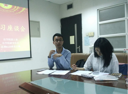 5月17日晚,法学院团工委、研究生会召开“两学一做”学习座谈会。座谈会以“全面推进法治中国建设”为主题,与会党员认真学习了党的“十八大”以来习近平总书记关于全面推进依法治国的若干重要讲话,并以小组为单位展开了深入的交流和探讨,取得了丰硕成果。