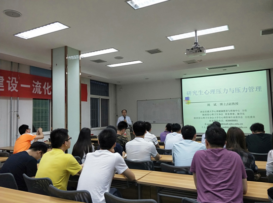 2018年5月24日晚七点半,法学院与化工学院在化工学院办公楼106会议室联合举办“研究生压力与压力管理”主题心理讲座。讲座由我校大学生心理健康教育与咨询中心主任姚斌副教授主讲,法学院与化工学院30多名研究生参加了此次讲座。