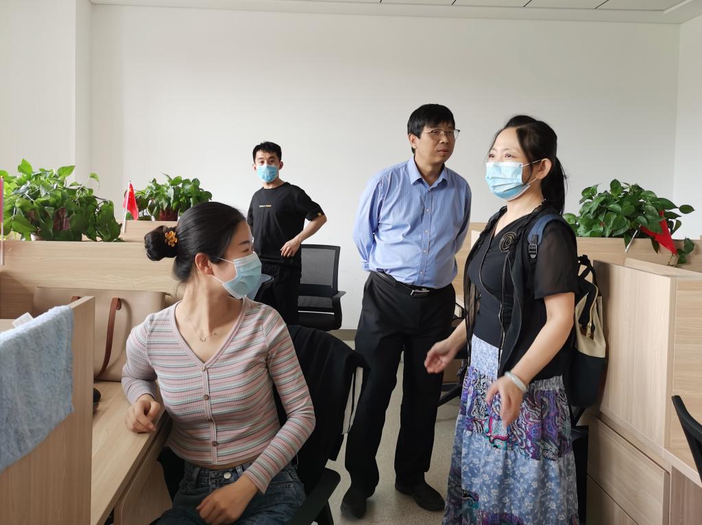 紧接着两位老师来到研究生宿舍看望第二批返校的博士研究生和硕士研究生。张乃钟老师提醒大家,特殊时期要更加注意开窗开门通风,注意防护。