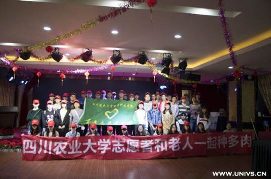 为了奉献出大学生的爱与责任,呼吁更多的人关注老年人。近日,四川农业大学动物科技学院青年志愿者协会的志愿者前往“康馨缘”老年公寓,为老人们送去关怀,带去陪伴。