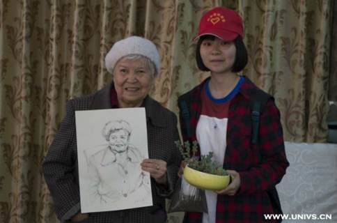 在活动开始前,由四川农业大学动物科技学院团委副书记董尧抽出了六个号码,由志愿者为抽中的六名老人进行素描画像。活动结束时,志愿者将画出的素描画像送给了老人家。