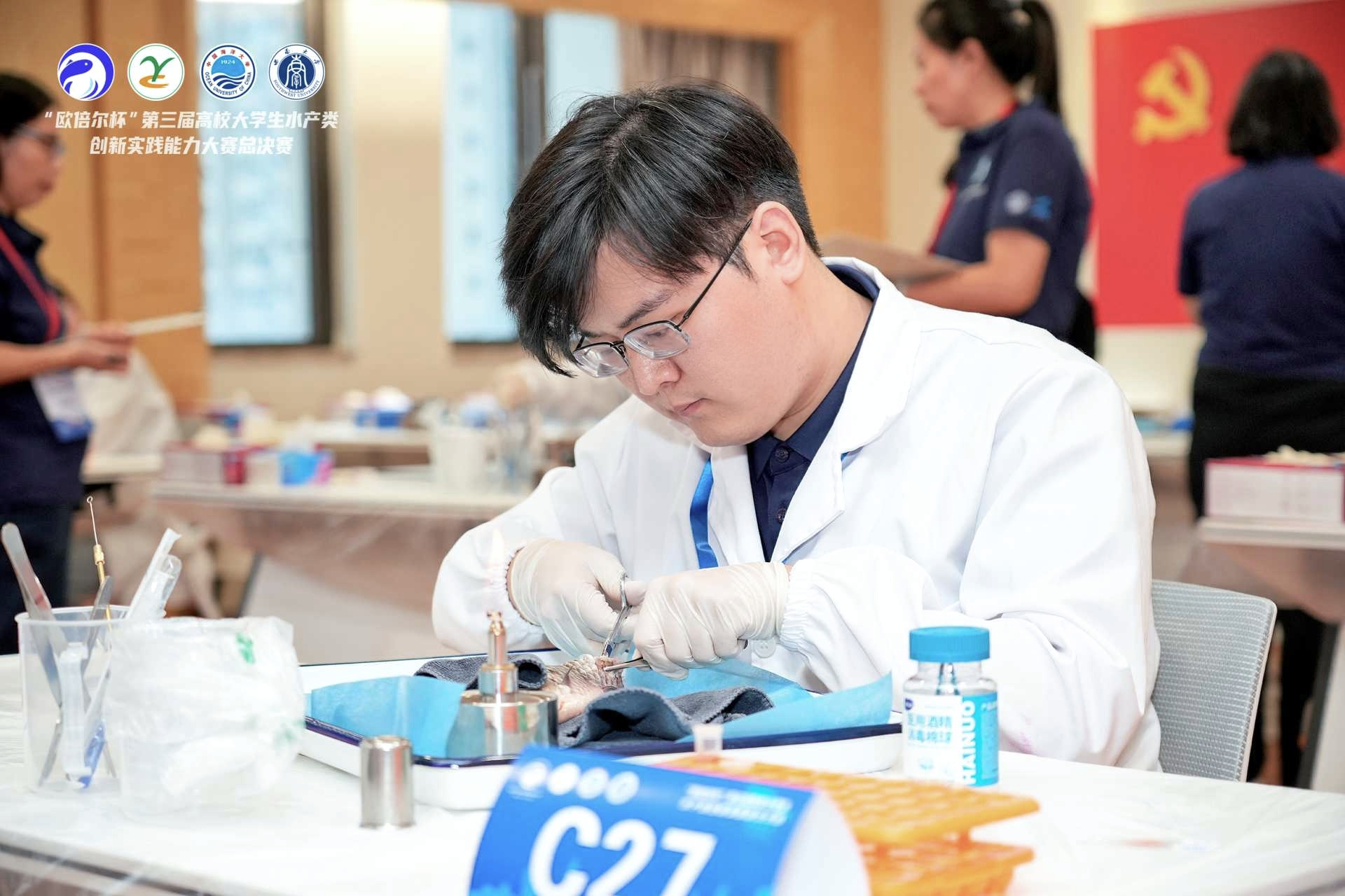 凭借扎实的实验功底与不懈的探索精神,成泓钢在多项科研竞赛中脱颖而出。他先后获得了创新创业大赛的省级铜奖、国家级铜奖,以及全国高校大学生水产技能大赛的团体一等奖。这些荣誉不仅是对他科研能力的肯定,更是对他甘于坚持、勇于创新的最佳证明。