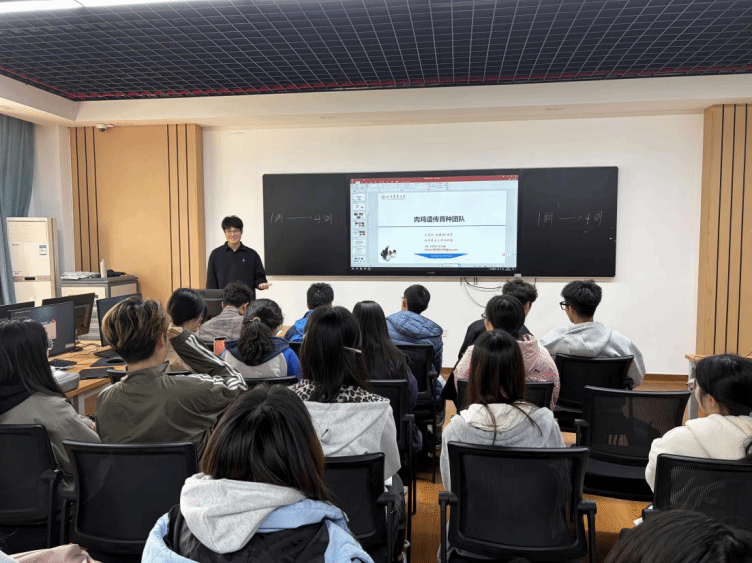 王英杰老师以肉鸡遗传育种为切入点,介绍了家禽育种工作中从群体选育到分子设计的系统思路。他结合团队在肉鸡生长性能、抗病力等方面的研究实例,生动展现了遗传改良如何助力畜禽养殖提质增效,并鼓励同学们关注产业需求,培养解决实际问题的科研思维。
