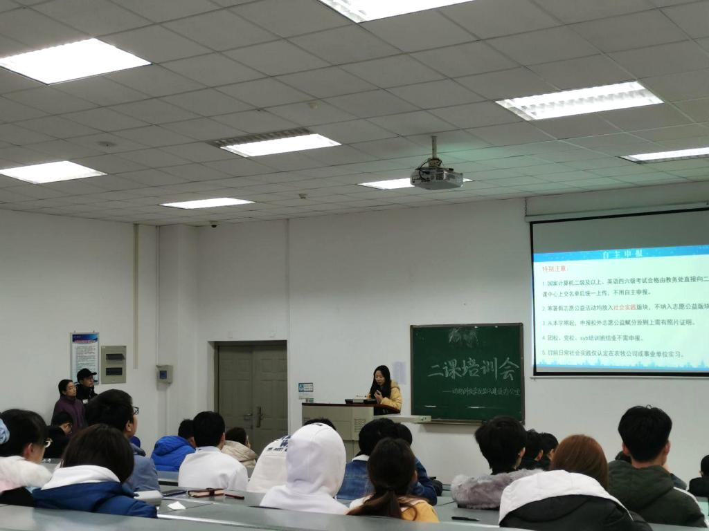 11月24日中午,学院2020-2021学年秋季学期第二课堂培训会于4A303举行,全院各小班组织委员及学生代表参会。会议由学院学风建设办公室成员周家炜、孙路苹、蒋艺娜主讲。