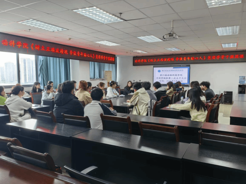 3月30日中午,学院春季学期党团学组织主干会议暨骨干微团课在7-1011会议室顺利召开。本次会议由刘思彤同学主持,学院党委办公室副主任、团委副书记舒正悦,党委办公室干部成蓥出席会议,党团学组织全体主干成员共同参加。