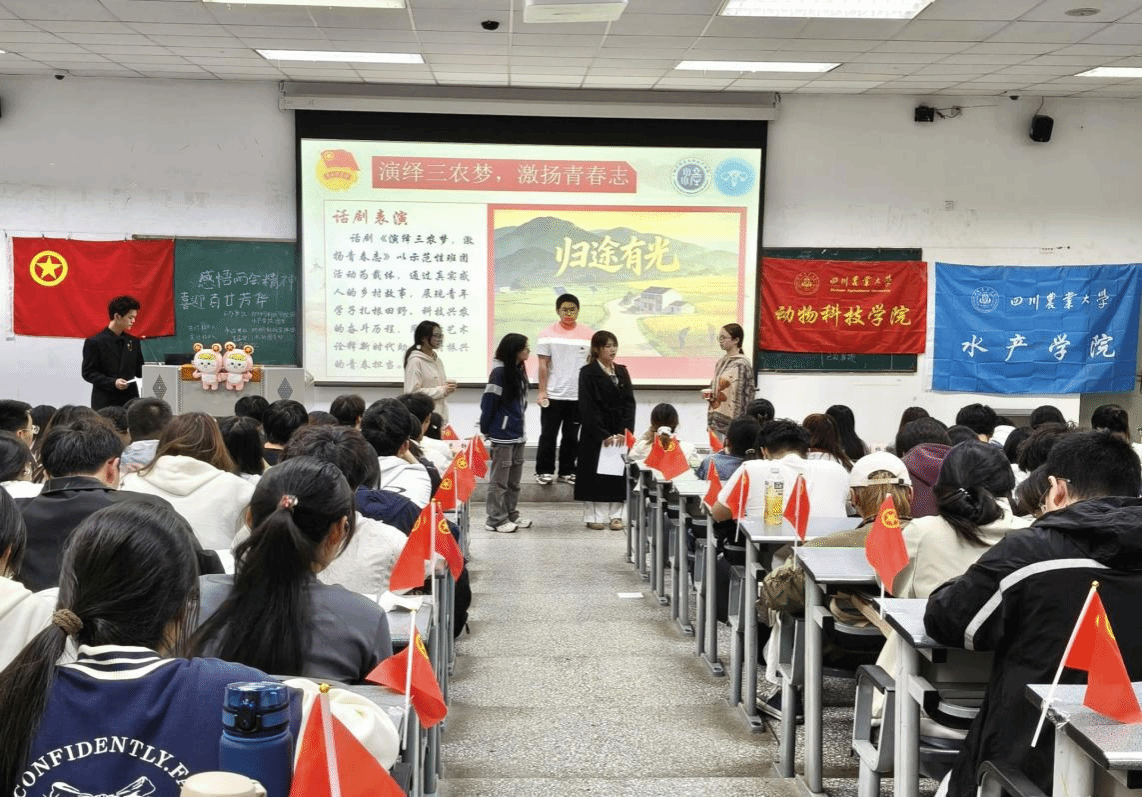 为巩固团员和青年主题教育成果,深入学习2026年全国两会精神,贯彻习近平总书记关于树立和践行正确政绩观的重要论述,恰逢学校百廿校庆之际,我院团委、水产学院团委、动科202503班团支部、动科202505班团支部、水产202501班团支部、水产202504班团支部联合承办的“感悟两会精神,喜迎百廿芳华”主题3-4月示范性班团活动,于4月7日16:30-18:00在4A-103顺利开展。本次示范性班团活动以四大篇章展开,吸引120余名同学踊跃参与。