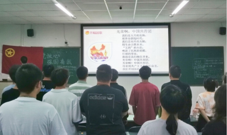 齐唱团歌后,团员们齐声朗诵习近平总书记在建党100周年大会上的重要讲话选段。讲话中,习近平总书记表达了对新一代青年人的期望,希望中国青年可以成为中华民族伟大复兴的先锋力量。团员们纷纷表示要努力拼搏,成为有志气、有骨气、有底气的青年人。随后,团支书为大家朗读了来自四川共青团委写给全体团员的一封信,带领团员们回顾了近百年来的奋进青年为中国做出的贡献,鼓励团员们奋发向上,积极进取,主动担起中华民族伟大复兴的时代责任。