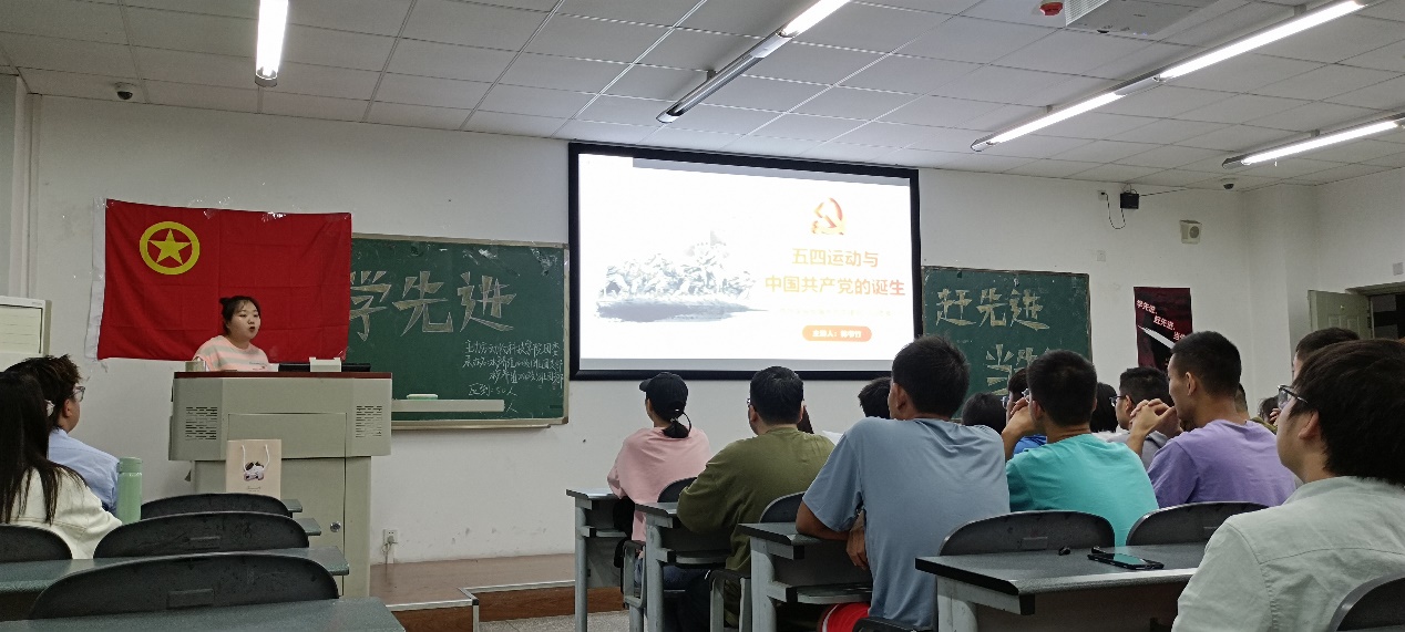 支部有幸邀请到了马克思主义学院党史宣传小分队的林书竹学姐,她为支部团员们生动讲解了五四运动背景、过程、影响,还原了那场彻底的反帝反封建全民族运动。活动结束后,有团员表示:“我对五四运动的背景从未像现在这样清晰过。”团支书唐迪说:“青年兴则国家兴,青年强则国家强。国家的希望在青年,民族的未来在青年。我们需要不断用五四精神校正人生坐标,坚定人生理想,拓展人生舞台,激发进取动力,向榜样看齐,在奋斗中绽放青春光芒。”