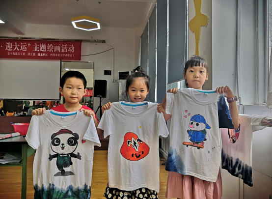 2020年7月21日上午9:00,四川农业大学动物科技学院团委青年志愿者工作部成员来到了温江区金马街道假日学校,开展了以“爱成都,迎大运”为主题的T恤绘画课,带领小朋友们了解了“扎染”这项非物质文化遗产,感受了创意T恤和传统文化相碰撞的精彩火花。