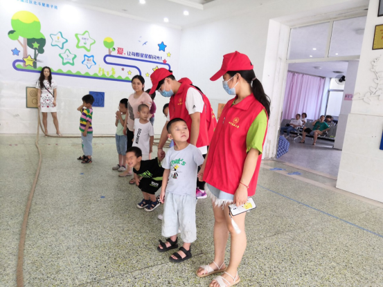 “我们园内现有100多名孩子和30多位老师。”王一园长向志愿者介绍道。在王一园长的讲述下,成员们了解到,由于孩子们比较特殊,很多幼儿园都不能很好地照顾他们,因此他们都会被家长送来北斗星亲子学苑。但因为老师数量不足,孩子们不能住在园内,需要每天在幼儿园与家之间往返,所以北斗星亲子学苑接收的孩子大多都是住在附近的。尽管老师数量不足,但是北斗星亲子学苑却尽量对每一个特殊孩子开展“一对一”教学,并让每位孩子的家长全程陪伴上课,指导培训家长强化所学内容在日常生活中的泛华,尽最大可能的让每一个特殊儿童都能有融入社会,独立生活的能力。