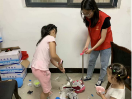 8月14日上午,“服务社区,领略责任意识”活动在金牛社区顺利开展。小朋友在实践队员带领下,用扫帚打扫社区活动室卫生,并用抹布认真擦拭活动室内的每一张桌子。走出活动室后,志愿者与小朋友一同用小铲子清理楼栋间的小广告,并戴上手套后将地上的白色垃圾捡拾进垃圾桶。志愿者表示:“街道在清扫后更加井然有序,院落也更加干净整洁,这些都是小朋友们的功劳。”