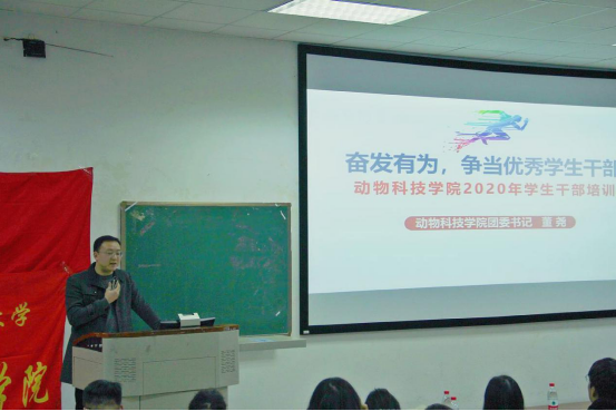 董尧以幽默轻松的语言带动全场参训学生的积极性,他强调:每一位学生干部都应端正自己当学生干部的目的与意图——锻炼本领、为同学服务、为集体做贡献;摸索如何当好干部——不存私心、牢记责任、熟悉业务;立志当怎样的学生干部——具有动科立场、动科气质、动科情怀。