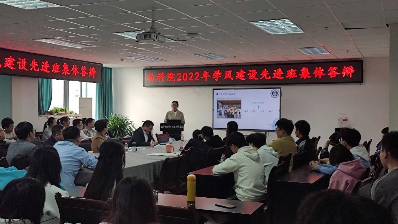 11月4日下午,学院2021-2022学年学风建设先进班集体答辩和2022级优秀学风建设方案班集体答辩在7教1011会议室举行,学院党委书记付瑞琼、水产养殖系主任姜俊教授、学院行政办公室主任沈蕾、党委办公室全体老师出席并担任评委。全体2022级班主任、全体本科小班班委代表共计百余人参加本次活动。
