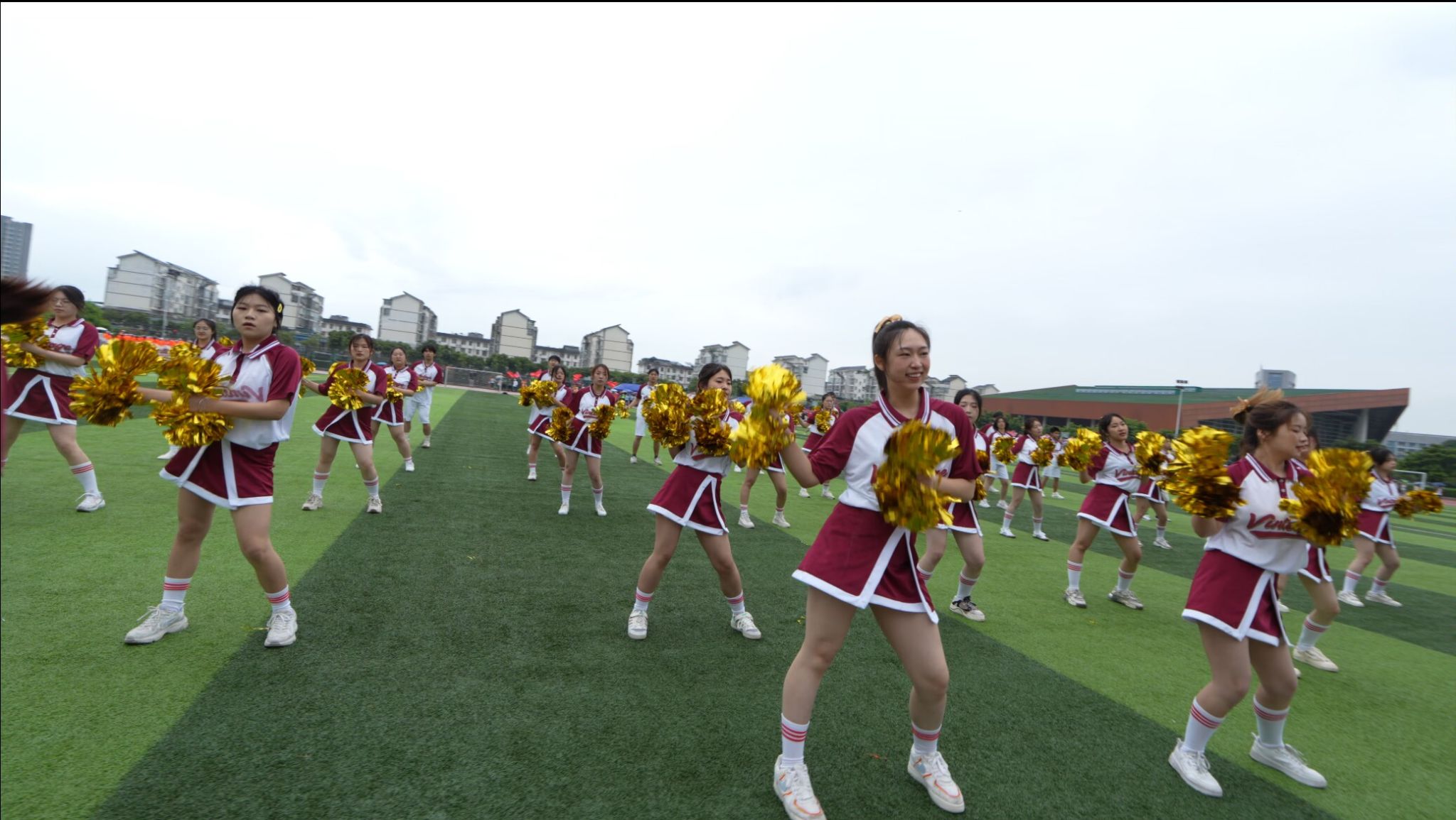 比赛当天,尽管下着淅淅沥沥的小雨,但丝毫没有削弱健美操队的满腔热情,她们个个容光焕发,技术娴熟,展现出了神采飞扬的精彩舞姿,难以忘怀的无限魅力。身着红色队服,手举金色彩球的动科健儿们,将每一步每一个动作精准地踩在音乐节奏上。并跟随着音乐的鼓点,进行复杂且多变的队形转换。他们的动作张弛有力,干脆利落,洋溢着热血澎湃的激情,绽放着活力四射的青春。“踩,踩,踩,踩,跟我踩!”动科健儿们如音乐内容那般用力踩出了奋斗,踩出了青春,踩出了自信。他们身上散发出的自信光芒,盎然生机,令人目不暇接,过目难忘。