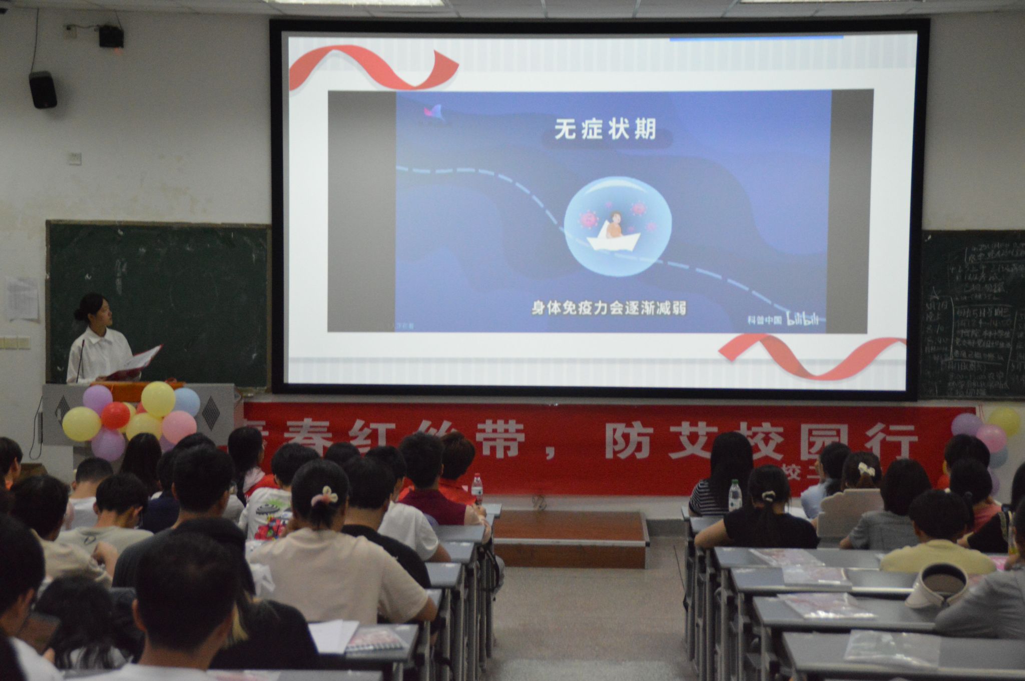 5月14日下午,由温江区疾控中心主办、校二医院和动科学院承办的“青春红丝带,防艾校园行”同伴教育防艾主题活动,在4教A108举行。成都校区近300名同学参加此次活动。活动特邀成都工业学院四川性社会学与性教育研究中心专任教师沃文芝老师作为督导老师。