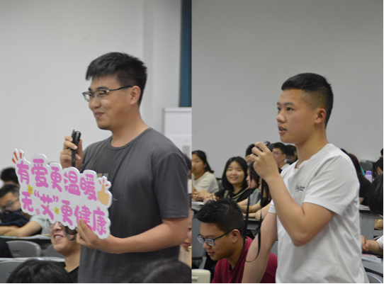 温江区防艾志愿者陶羽明作题为《明明白白你的“性”》的科普。他的讲解系统又全面,同学们在他的引导下就“大学生该不该在婚前发生性行为”这一话题展开了一场讨论。