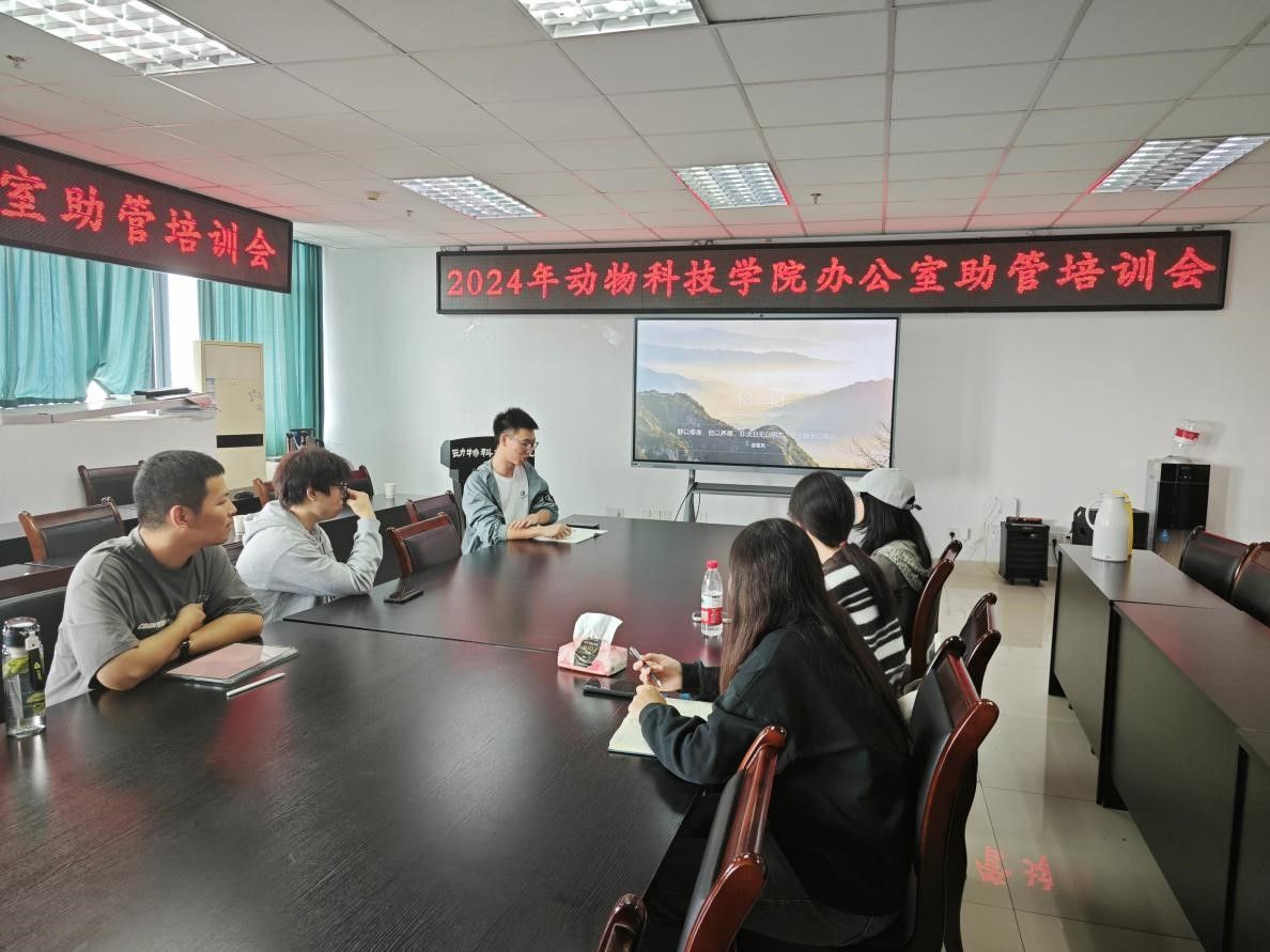 为进一步提升学院助管团队的综合素质与业务能力,加强团队管理的规范性和高效性,动物科技学院于10月17日中午在7-1011会议室召开助管培训会,对学院全体助管同学进行了助管培训。本次助管培训会由学院党委办公室助理实习生曹星宇主持。
