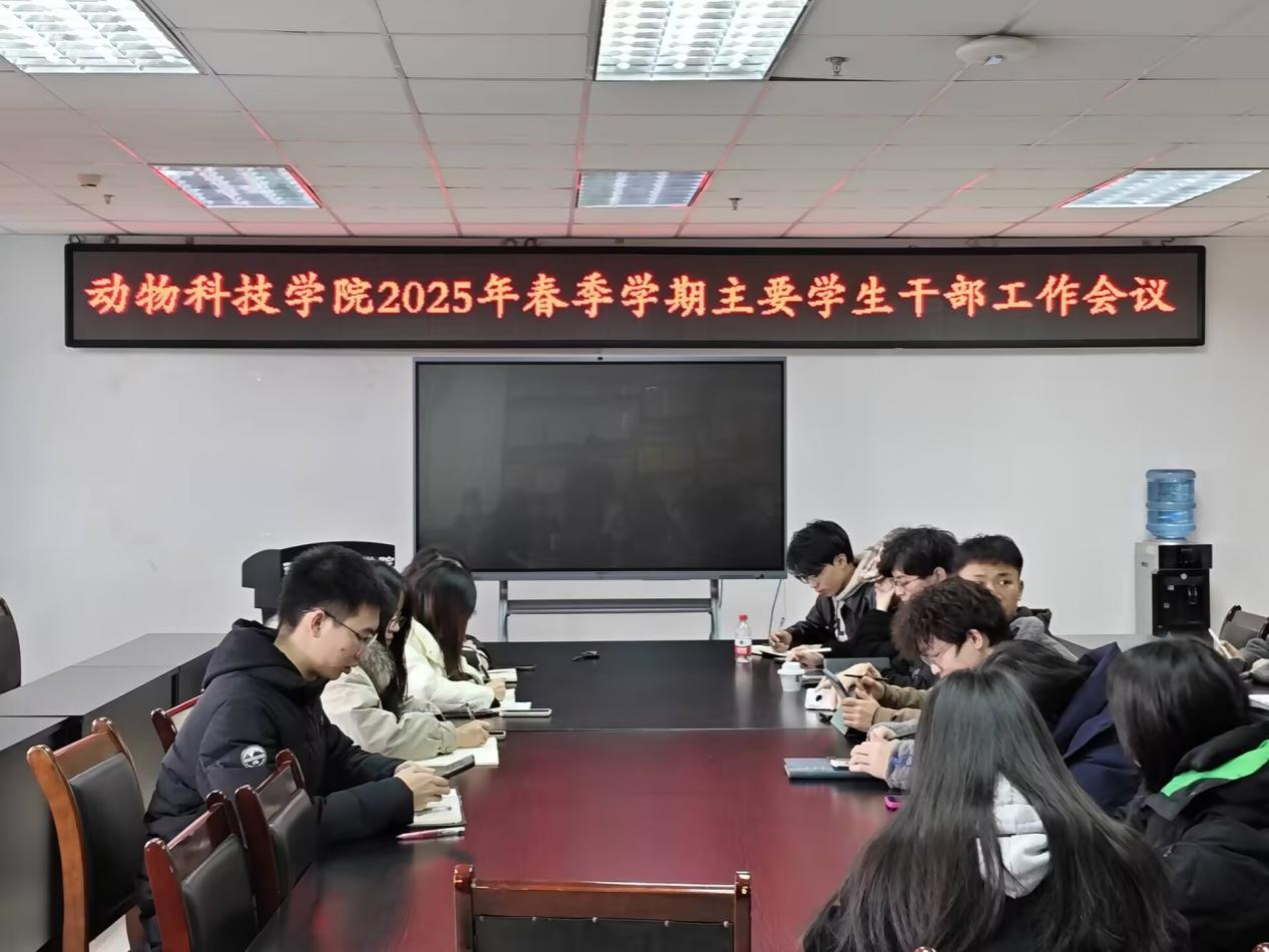 3月6日中午,动物科技学院2025年春季学期主要学生干部工作会议于7教1011会议室顺利召开。学院全体辅导员老师、第十八届主席团成员与及党团学组织主要学生干部共60余人参加会议。会议由学院学生会执行主席陶羽明主持。