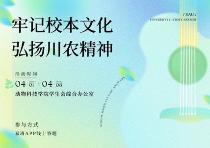 为激发学院同学对学校及学院的历史文化学习了解的兴趣,动物科技学院学生会综合办公室于4月1日至4月3日举办了“牢记校本文化,弘扬川农精神” 线上答题活动。