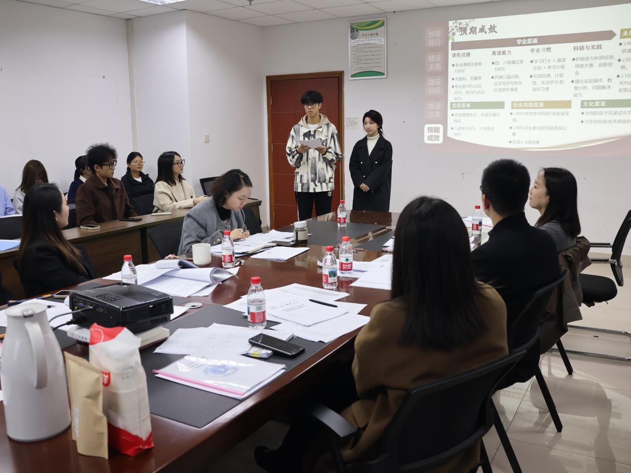 11月11日下午,动物科技学院2025年学风建设方案优秀班集体评选答辩活动在7教1013室顺利开展。出席人员有学院党委副书记、纪委书记杨雪,学院党委办公室副主任、团委副书记舒正悦,动物遗传育种研究中心副主任胡深强等7名老师及全体新生班级。
