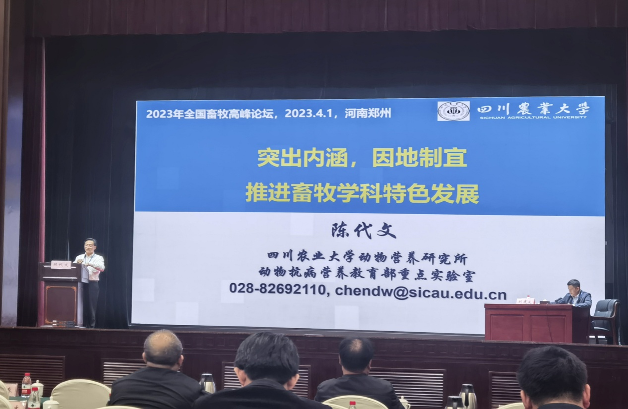 陈代文在会上作了题为《突出内涵因地制宜推进畜牧学科特色发展》的专题报告,从学科建设的内涵、基本思路和目标、主要做法与体会等方面汇报了我校畜牧学科建设情况,重点围绕大会主题介绍了畜牧学科本科生、硕士研究生产教融合培养模式、博士研究生科教融汇培养模式的构建与实践经验。